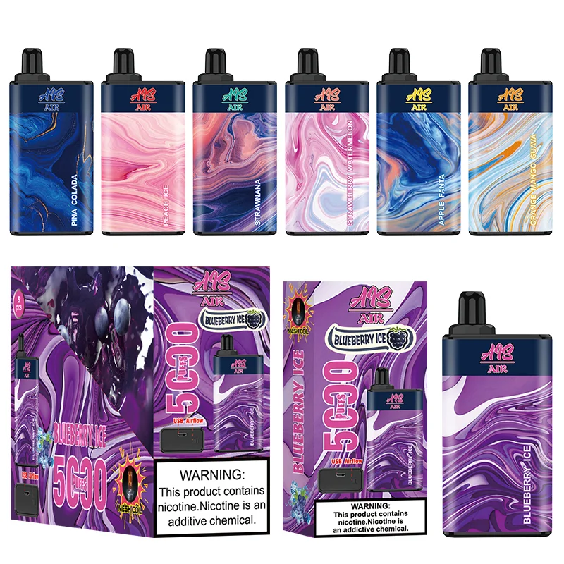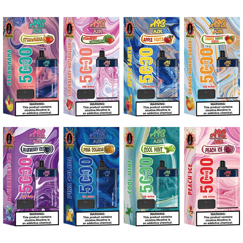 Ais air 5000 is a disposable vape device with popular box design and colorful RGB light. It contains 15ml 2%/5% nicotine salt e-juice and vape up to 5000 puffs. There are 8 flavors for you to choose. The RGB light makes it the coolest disposable device, which gurantte you finish the last drop of the ejuice in the box and light glowing all the time.