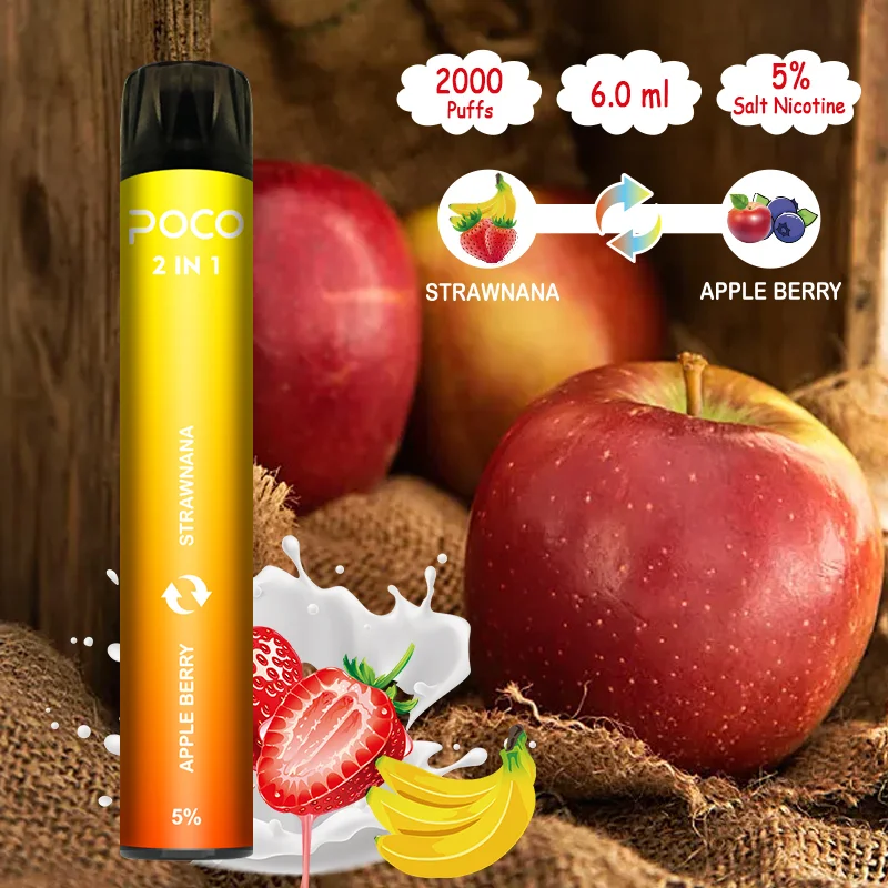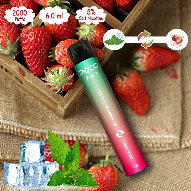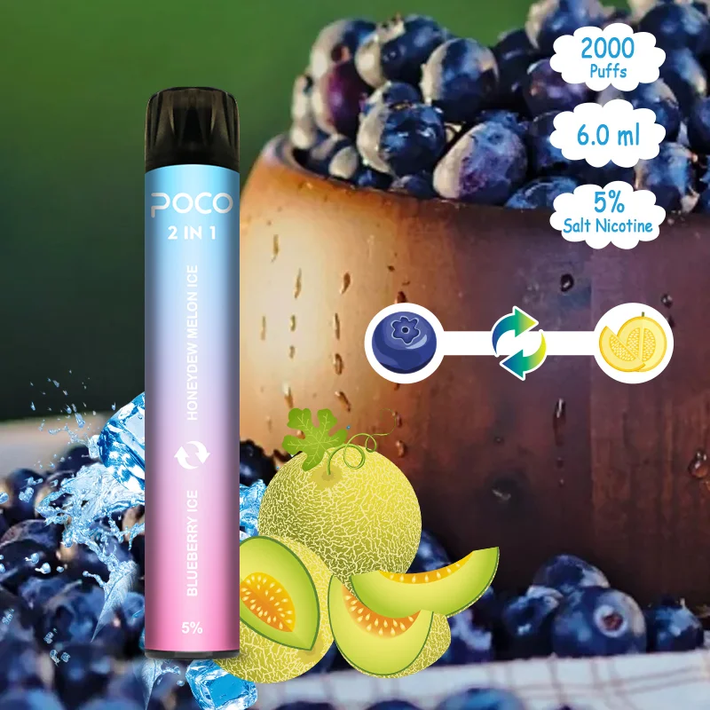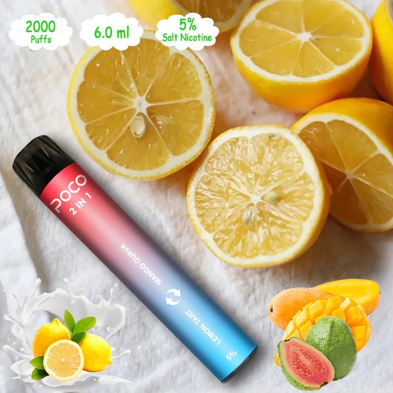 Poco 2in1 is a disposable vape device with colorful RGB light and double flavours. It contains 3+3ml 5% nicotine salt e-juice and vape up to 2000 puffs. There are 6 flavors for you to choose. The RGB light makes it the coolest disposable device, which gurantte you finish the last drop of the ejuice in the box and light glowing all the time.