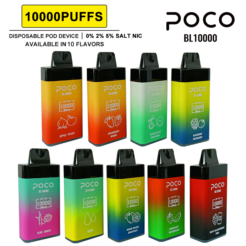 It contains 20ml 5% nicotine salt e-juice and vape up to 10000 puffs. There are 10 flavors for you to choose. The RGB light makes it the coolest disposable device, which gurantte you finish the last drop of the ejuice in the tank and light glowing all the time.