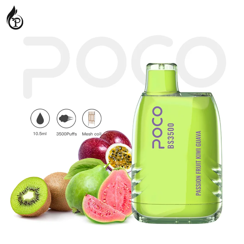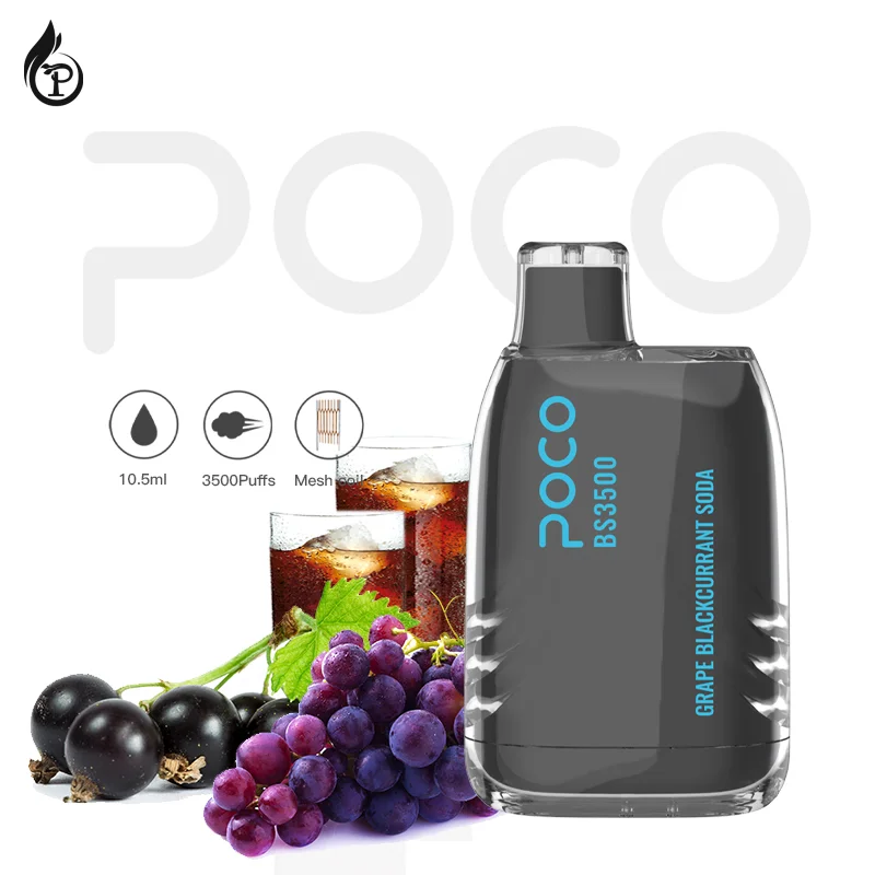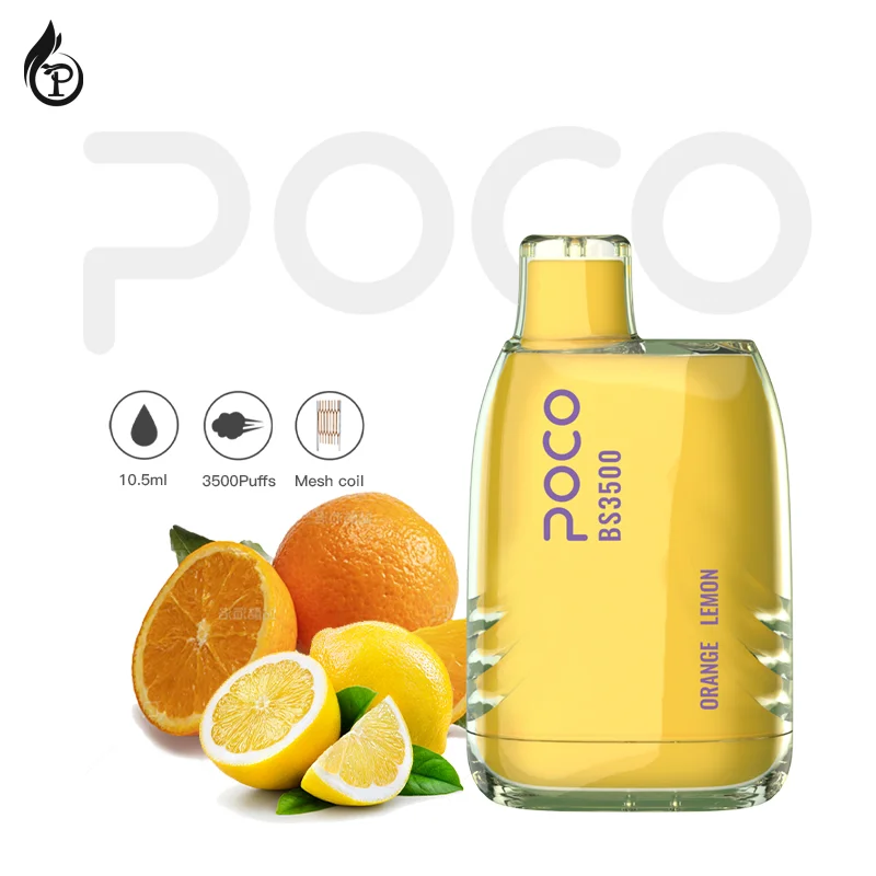 POCO BS3500 is a disposable vape device with Two-color film design.It contains 10.5ml 5% nicotine salt e-juice and vape up to 3500 puffs. There are 12 flavors for you to choose. The device gurantting you finish the last drop of the ejuice in the tank all the time.