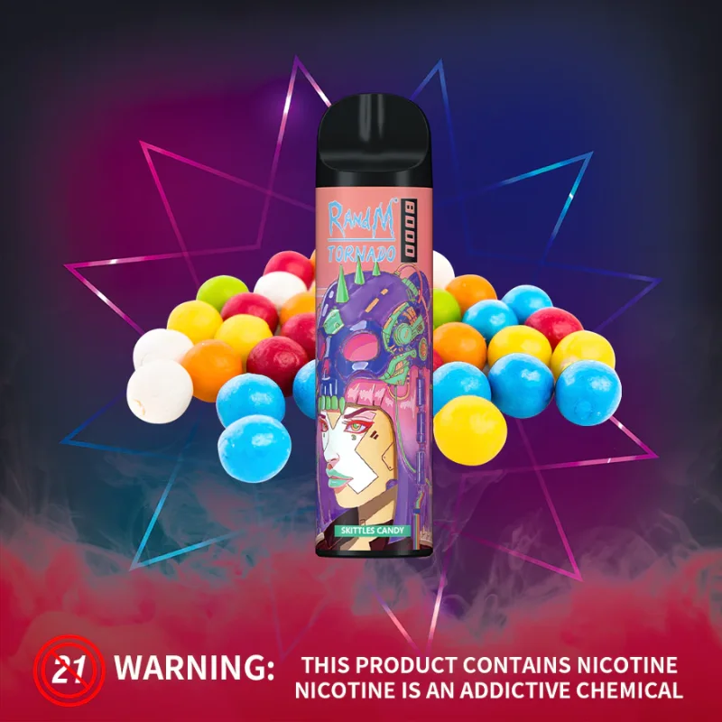 RandM Tornado 8000 is a disposable vape device with mesh coil design. It contains 16ml 5% nicotine salt e-juice and vape up to 8000 puffs. There are 20 flavors for you to choose. The RGB light makes it the coolest disposable device, which gurantte you finish the last drop of the ejuice in the box and light glowing all the time.