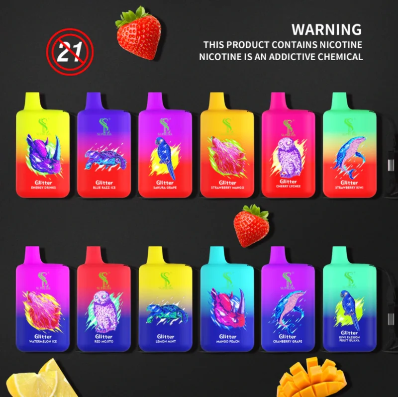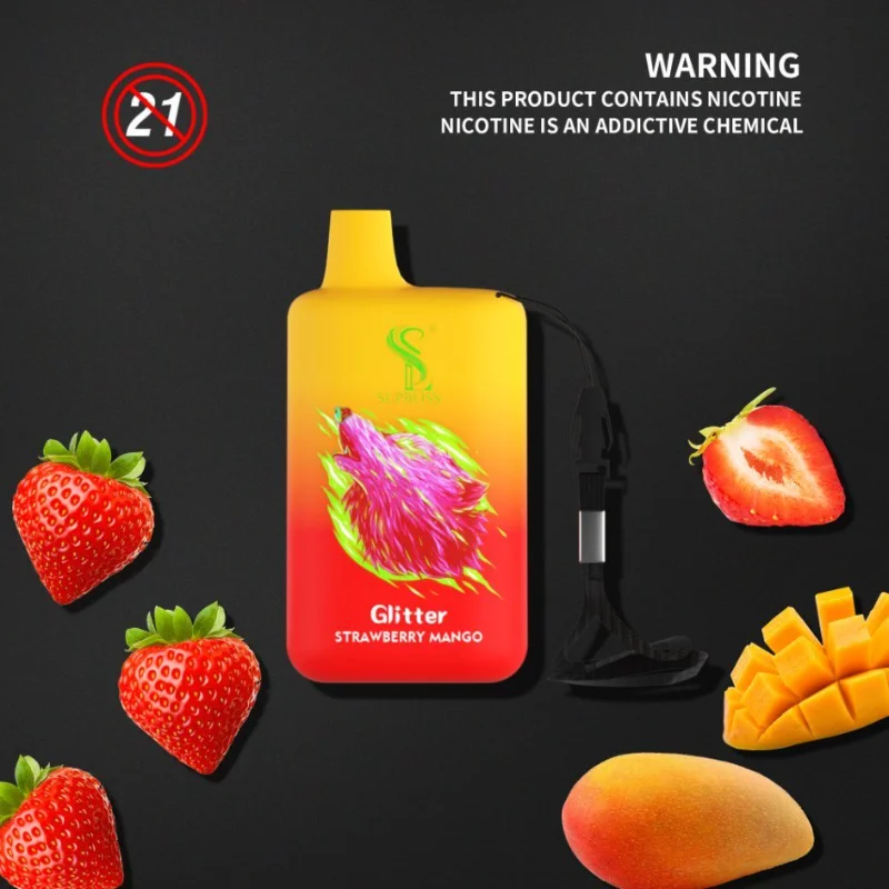 Supbliss Glitter 5800 is a disposable vape device with box design. It contains 12ml 0/2/3/5% nicotine salt e-juice and vape up to 5800 puffs. There are 10 flavors for you to choose. The airflow control let you choose the best spot suit yourself plus it comes with a rechargeable Type-C port at the buttom of the device, which gurantte you finish the last drop of the ejuice in the tank all the time.