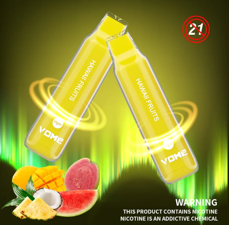 Vome Vigor is a disposable vape device with New design. It contains 6.5ml 0/2/3/5% nicotine salt e-juice and vape up to 2500 puffs. There are 12 flavors for you to choose. The airflow control let you choose the best spot suit yourself plus it comes with a rechargeable Type-C port at the buttom of the device, which gurantte you finish the last drop of the ejuice in the tank all the time.